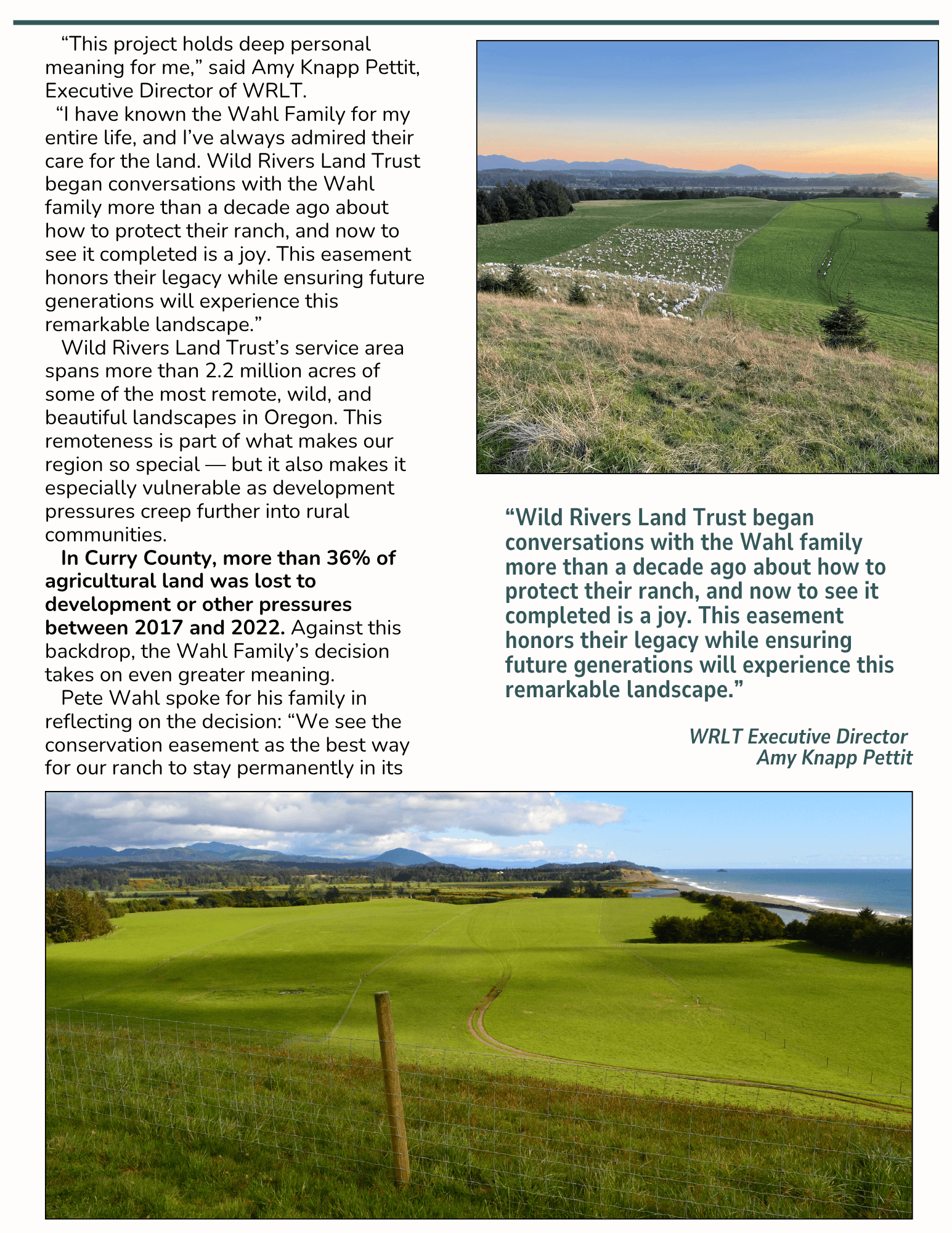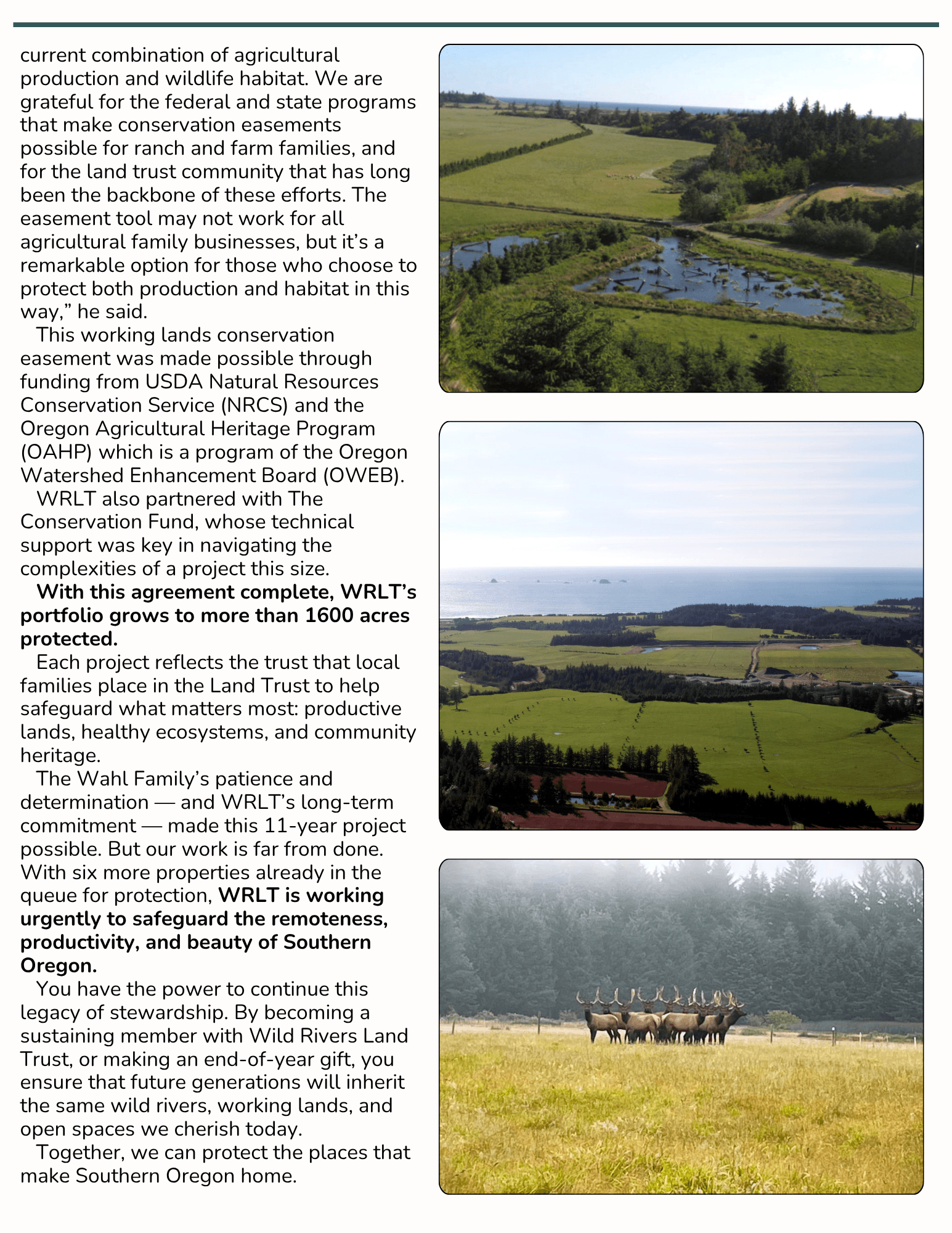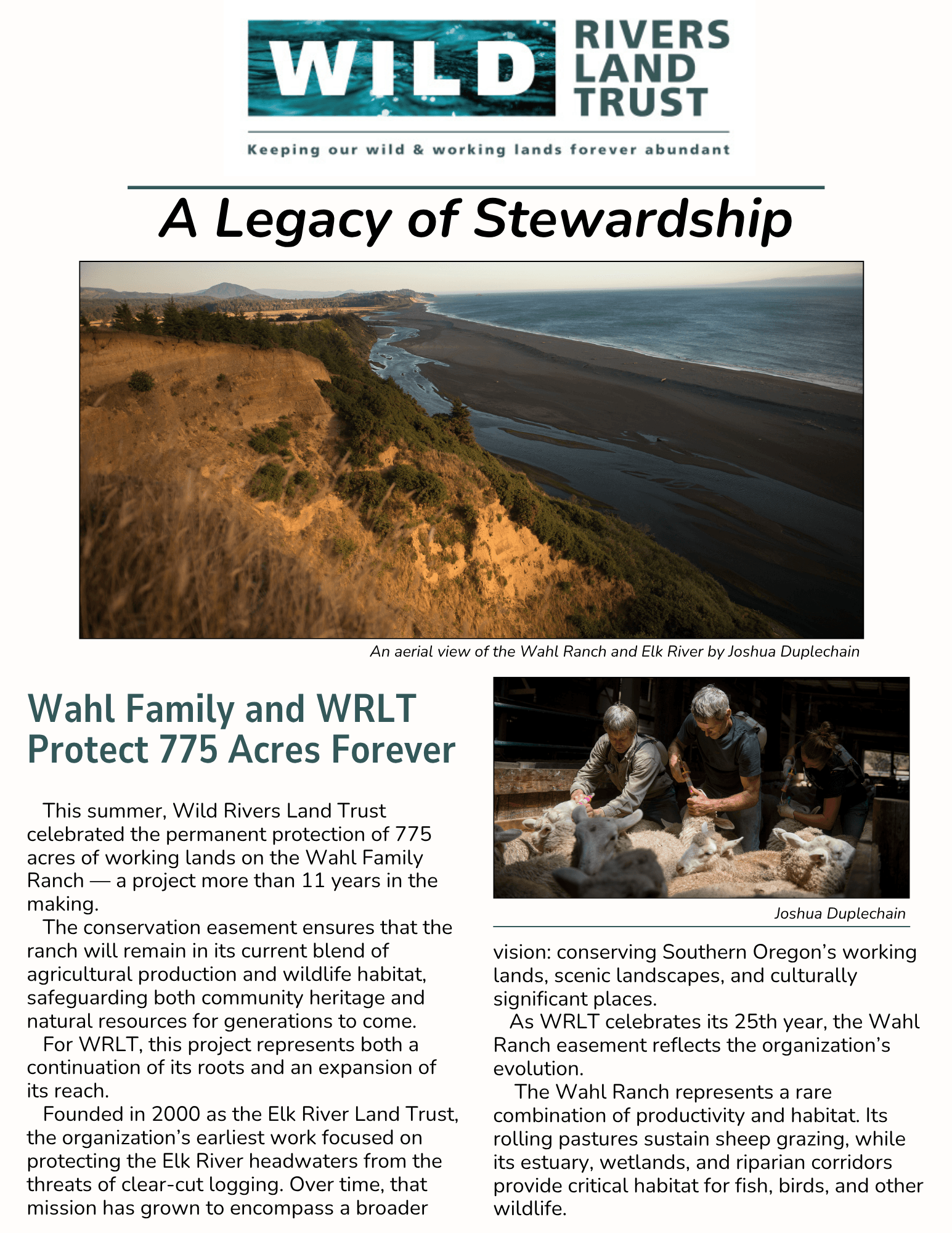 The properties also contain a large portion of the former Western States Plywood Mill site, which will be cleaned up and restored using a $2 million grant from the Environmental Protection Agency secured by WRLT in 2023.